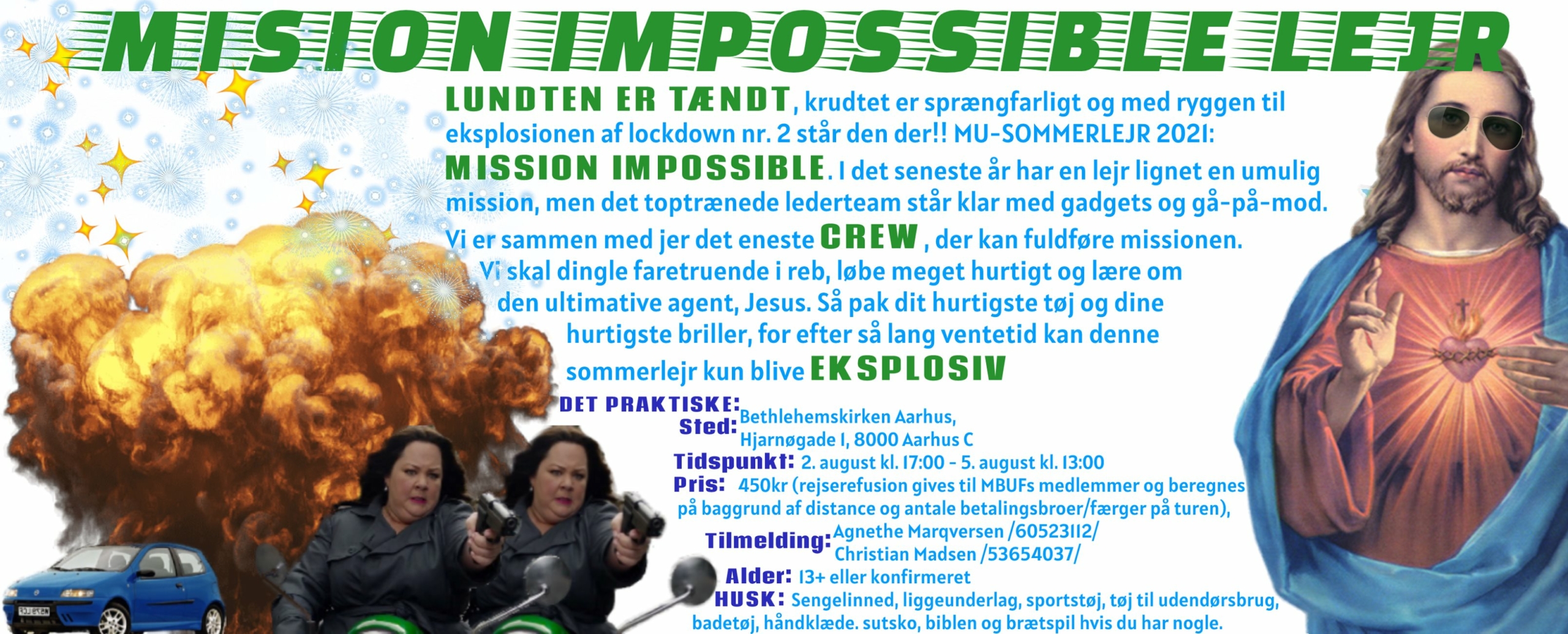 /af Maria AaskovLUNDTEN ER TÆNDT, krudtet er sprængfarligt og med ryggen til eksplosionen af lockdown nr. 2 står den der!! MU-SOMMERLEJR 2021: MISSION IMPOSSIBLE. I det seneste år har en lejr lignet en umulig mission, men det toptrænede lederteam står klar med gadgets og gå-på-mod.